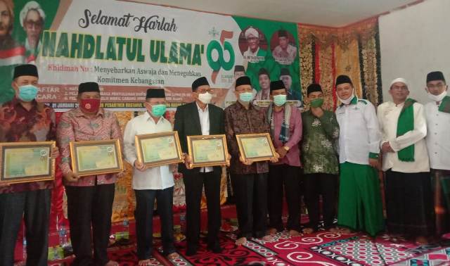 Penghargaan diserahkan Ketua PCNU Padang Pariaman Zainal Tuangku Mudo dalam kegiatan peringatan hari lahir (Harlah) NU ke-95 tingkat Padang Pariaman, yang dilaksanakan Ahad (31/1/2021) di Pondok Pesantren Bustanul Yaqin Lubuk Alung.