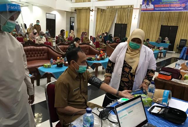 Vaksinasi ini diberikan pertama kepada Kapolres Padang Pariaman, dilanjutkan oleh Dandim 0308 Pariaman, Kepala Dinas Kependudukan dan Catatan Sipil serta Kepala Dinas Kesehatan.