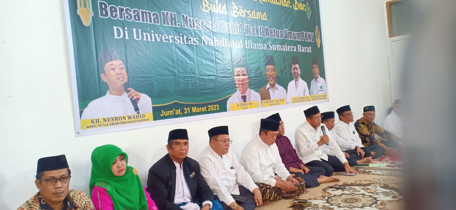 Demikian diungkapkan Wakil Ketua Umum Pengurus Besar Nahdlatul Ulama (PBNU) Kiai Nusron Wahid, saat berbuka bersama dengan jajaran Pengurus Wilayah Nahdlatul Ulama (PWNU) Sumatera Barat dan Universitas Nahdlatul Ulama (UNU) Sumatera Barat, Jumat (31/3/2023) di Kampus UNU Sumbar Jl. S. Parman Nomor 119-A Ulakkarang, Padang. Buka bersama dihadiri beberapa orang PBNU, Rais Syuriah M. Khozin Adnan, ‘Awan Prof. Sasriwarni, Wakil Sekretaris Jenderal Suleman Tanjung dan Wakil Bendahara Azwandi Rahman. Dari PWNU hadir Ketua Tanfidziyah Prof. Ganefri, Sekretaris Tan Gusli, Katib Joben, pengurus lainnya, Ketua PCNU se-Sumatera Barat, Rektor UNU Sumbar Prof. Dr. Yunia Wardi, M.Si, wakil rektor UNU bersama civitas akademik UNU Sumbar dan Rektor UIN Imam Bonjol Prof. Martin Kustati.