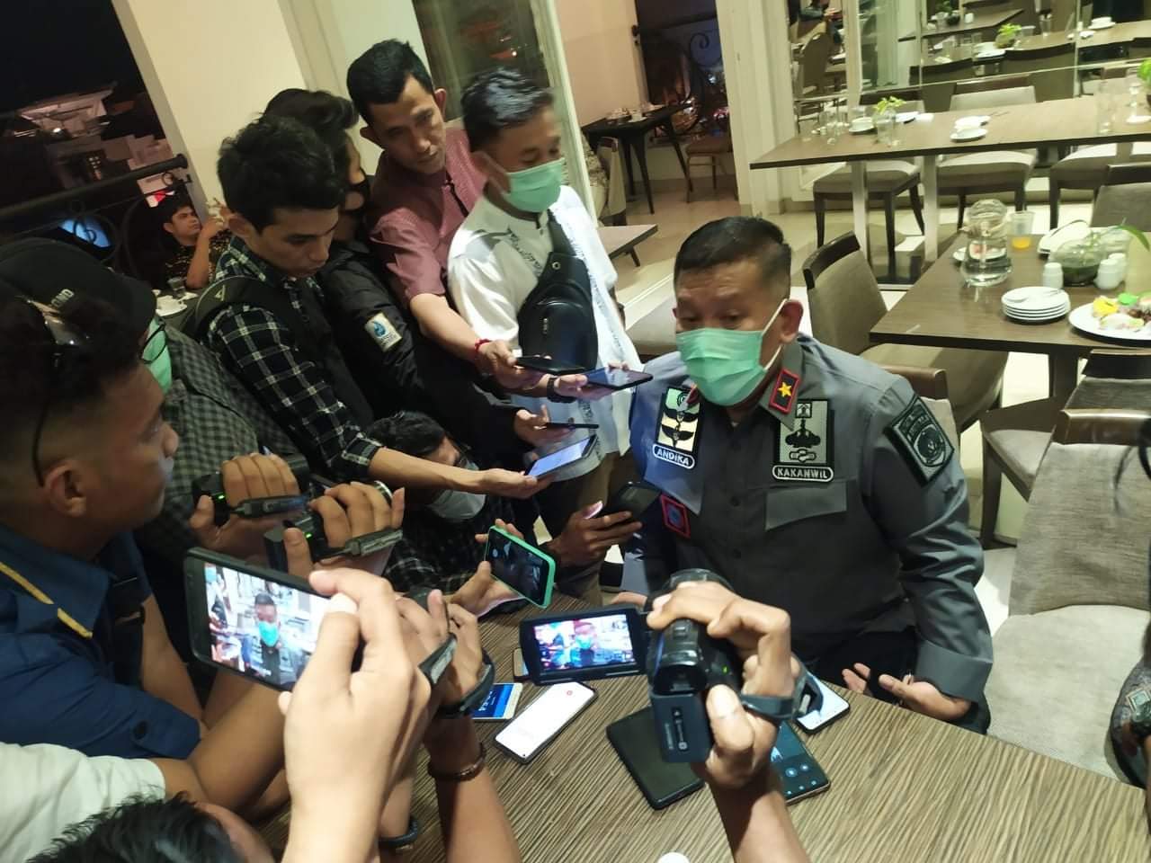 Dalam jumpa persnya dengan awak media, Jumat, 30/04 di Hayam Wuruk Hotel Padang, Kakanwil membeberkan kronologis pelarian narapidana yang terjadi saat berlangsungnya salat tarawih ini.