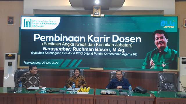 Hal itu disampaikan Kasubdit Ketenagaan Direktorat Diktis, Ruchman Basori pada kegiatan Focus Grup Discussion (FGD) Pembinaan Karir Dosen (Penilaian dan Penetapan Angka Kredit Jabatan Fungsional Dosen) di UIN Sayyid Ali Rahmatulloh (UIN SATU) Tulungagung, Jumat (27/5).
