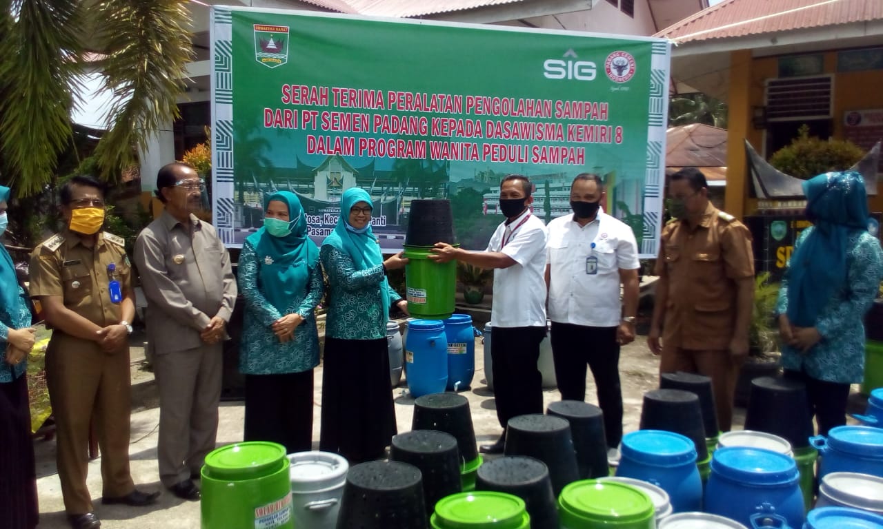 Bantuan tersebut diserahkan di halaman Kantor Camat Panti,Senin (31/8/2020). Bantuan itu,untuk program Wanita Peduli Sampah bagi kalangan Ibu rumah tangga itu diserahkan oleh Staf CSR Semen Padang, Jayus Karnedi yang didampingi Staf Unit Safety Health Environtment (SHE) kepada Ketua Dasawisma Kemiri 8, Irawati, .