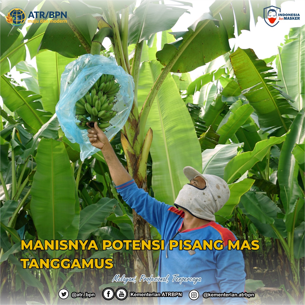Menteri Agraria dan Tata Ruang/Kepala Badan Pertanahan Nasional (ATR/BPN), Sofyan A. Djalil dalam kesempatan kunjungan kerja ke Provinsi Lampung, Minggu (28/02/2021), berkesempatan menilik potensi pisang mas Tanggamus ini.