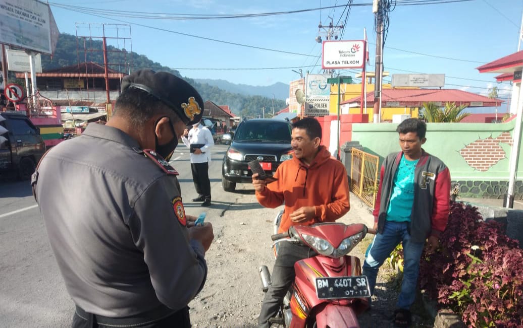 Maninjau, siberindo — Jajaran Kepolisian sektor (Polsek) Tanjung Raya kembali melaksanakan operasi yustisi dalam rangka penegakan disiplin aturan protokol kesehatan kepada masyarakat. Operasi tersebut dipusatkan di kawasan Simpang Maninjau, Kecamatan Tanjung Raya, Kabupaten Agam, Jum’at (2/7).