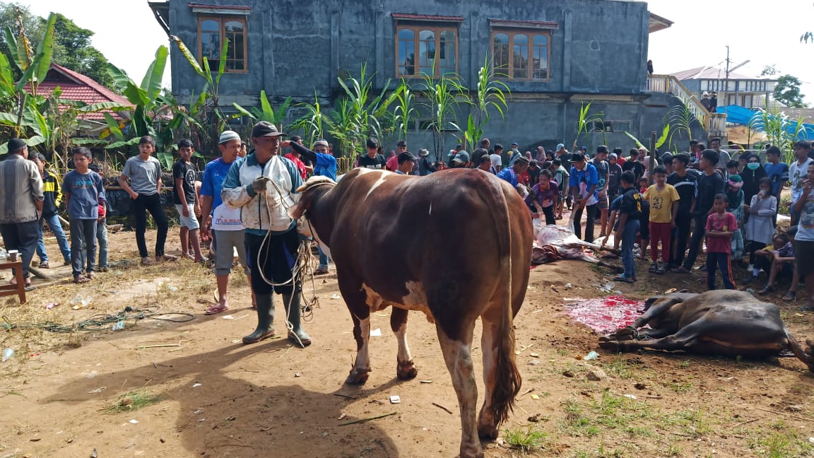 Sapi jenis simental itu disembelih Sabtu pagi di Masjid Baiturrahman Bukit Apit Puhun. Kemudian dagingnya dibagikan oleh panitia kurban kepada masyarakat di sekitar mesjid.
