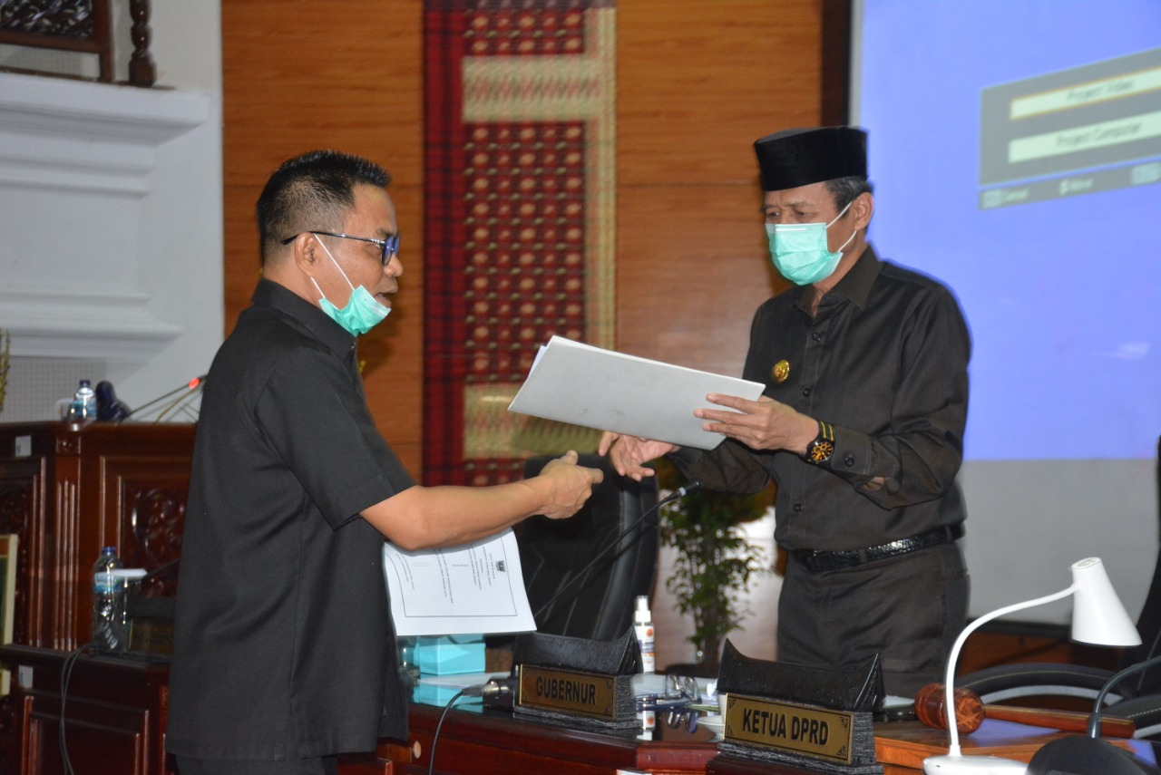 Padang, Siberindo – Rapat paripurna DPRD dalam rangka penyampaian nota pengantar Ranperda adaptasi kebiasaan baru dalam pencegahan dan pengendalian Covid-19, Gubernur Prof. Dr. H. Irwan Prayitno, Psi, MSc menghadiri secara langsung di ruang sidang utama DPRD Prov. Sumatera Barat Rabu (2/9/20)
