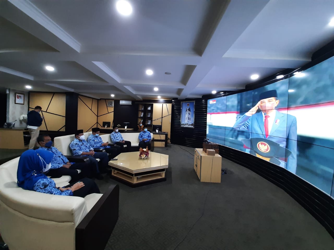 Upacara virtual dimulai tepat pukul 08.00 WIB. Upacara tesebut juga dihadiri, Asisten Setdako, Kepala Dinas Pendidikan, Kepala Dinas Kominfo, Kepala Kesbangpol, Kabag Protokol Komunikasi Pimpinan dan Kabag Tata Pemerintahan.