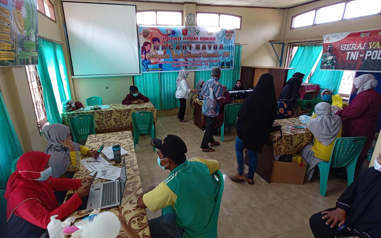 Bayua, siberindo.co — Ratusan masyarakat Nagari Bayua, Kecamatan Tanjung Raya, Kabupaten Agam mengikuti vaksinasi Covid-19 di kantor walinagari, Sabtu (2/10).