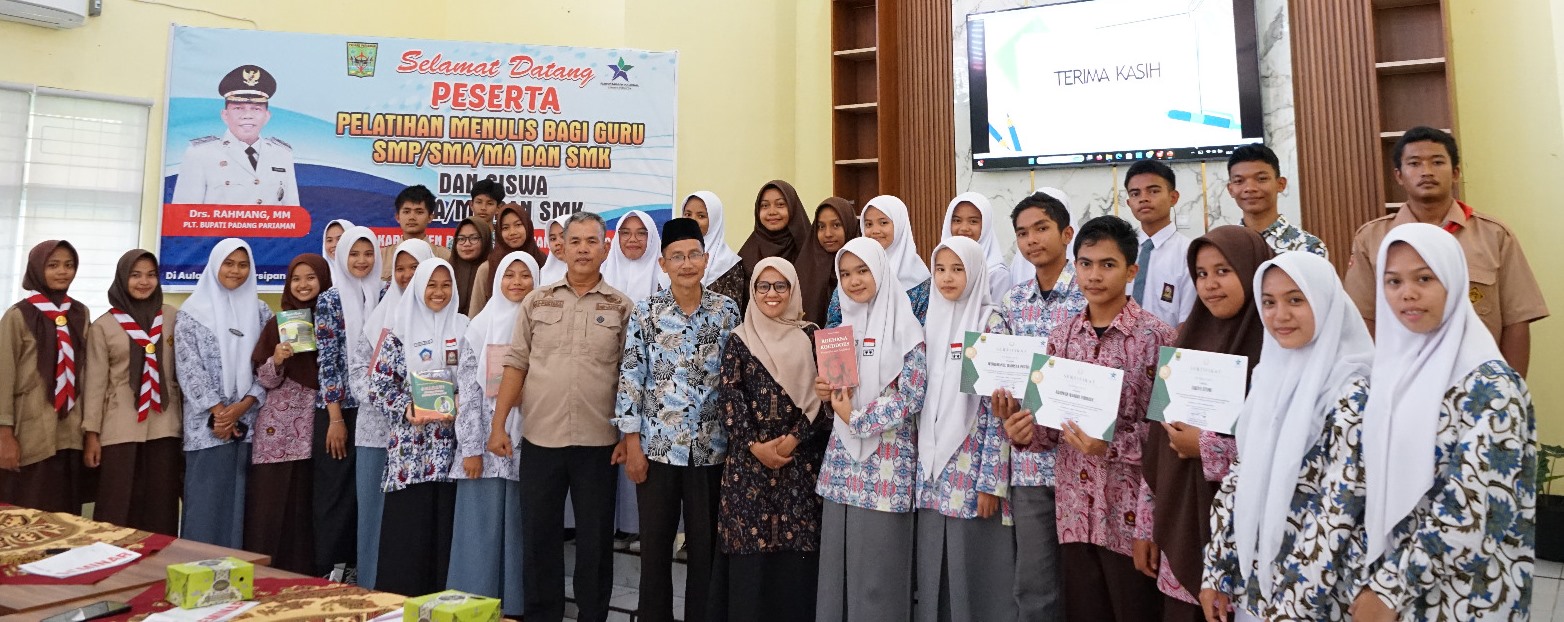 Siberindo.co – Pelatihan menulis bagi siswa Sekolah Menengah Atas,  Sekolah Menengah Kejurusan dan Madrasah Aliyah (SMA/SMK/MA) se-Kabupaten Padang Pariaman diharapkan mampu meningkatkan kemampuan menulis di kalangan siswa. Cukup banyak diantaranya yang sudah memulai menulis, namun keterbatasan informasi dan bimbingan, mereka tidak mengetahui langkah yang harus dilakukannya terhadap tulisan yang dihasilkan.