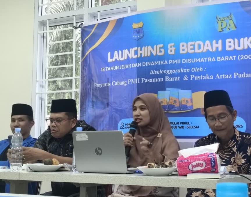 Demikian terungkap pada Launching dan Bedah Buku ”18 Tahun Jejak dan Dinamika PMII di Sumatera Barat (2006-2024)” karya penulis Armaidi Tanjung, S.Sos., M.A, pada Kamis (2/102025) di Pondok Pesantren Safinatu Najah Simpang Empat, Kabupaten Pasaman Barat. Tampil sebgai pembicara Dr. Asyari Hasan, S.H.I., M.Ag., C.M. (Wakil Dekan Fakultas Ekonomi dan Bisnis Universitas Islam Negeri Syarif Hidayatullah, Jakarta), Mita Fitria, MA (Dosen STAI Yaptip Pasaman Barat/Pembina PMII Pasaman Barat) dan Zeki Aliwardana, S.Pd.I, M.M. (Sekretaris PMII Cabang Kota Pariaman periode 2007-2009), dengan moderator Rifwan Efendi.
