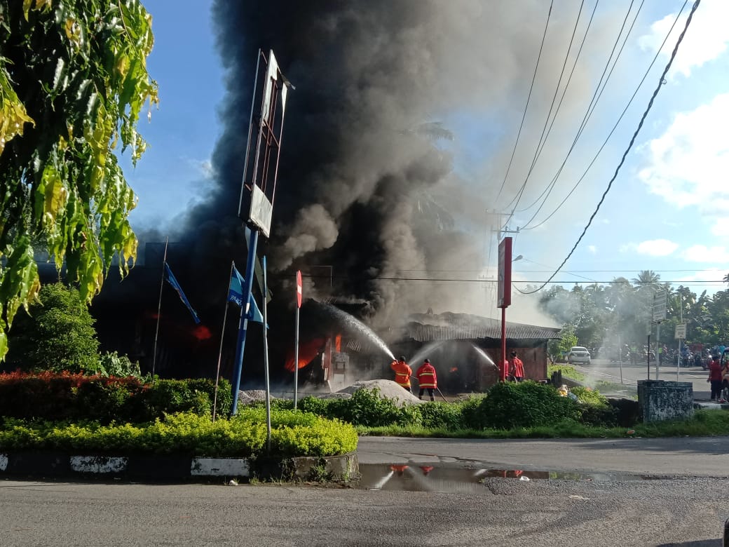 Kebakaran yang menghanguskan 2 petak toko persis di Simpang Tembok itu, masing-masing toko yang menjual bahan-bahan bangunan yang dikabarnya isi material bahan bangunan yang dijual penuh sesak, dan toko assesoris kendaraan.