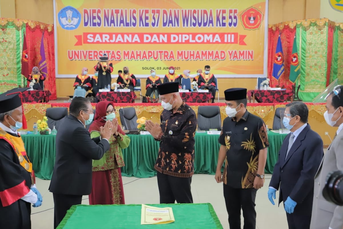 “Apalagi di era industry 4.0 saat ini, maka tugas kita seluruh Perguruan Tinggi di Sumatera Barat termasuk Universitas Mahaputra Muhammad Yamin untuk dapat menghadirkan serta meningkatkan SDM para lulusannya yang handal, berkualitas, kreatif dan inovatif guna menyongsong pembangunan yang lebih baik. Kita semua tentu berharap pada kampus ini agar dapat terus berkarya terutama dalam membentuk kapasitas diri untuk semua mahasiswa yang saat ini menuntut ilmu dan menjalani transformasi ilmu pengetahuan melalui seluruh program studi dan fakultas yang ada di Universitas Mahaputra Muhammad Yamin” tutur Mahyeldi.