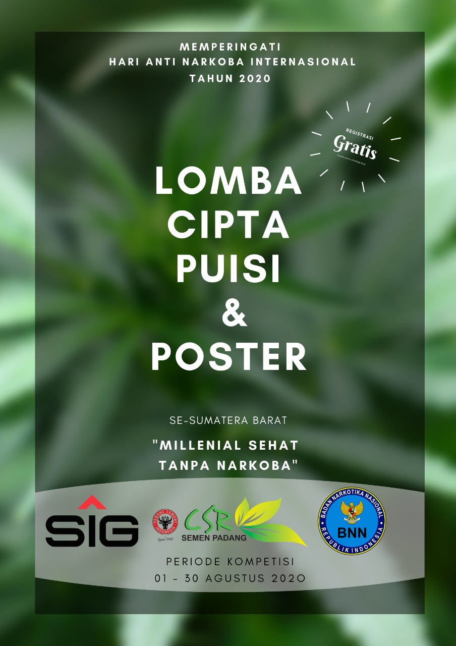 Padang, Siberindo – Lomba Cipta Puisi dan Poster yang digelar PT Semen Padang dalam rangka memperingati Hari Anti Narkoba Internasional Tahun 2020 ditutup. Hingga 30 Agustus 2020, panitia telah menerima sebanyak 175 karya pusi dan poster dari pelajar di Sumatera Barat.