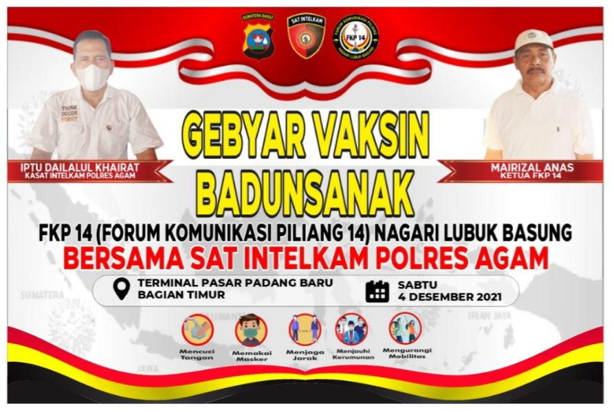 Vaksinasi badunsanak yang akan diikuti anak kemenakan kaum suku Piliang Nagari Lubukbasung bersama masyarakat setempat, bekerjasama dengan jajaran Polres Agam, merupakan salah satu wujud peran FKP14 Lubukbasung dalam menyukseskan kegiatan vaksinasi yang digelar saat ini.