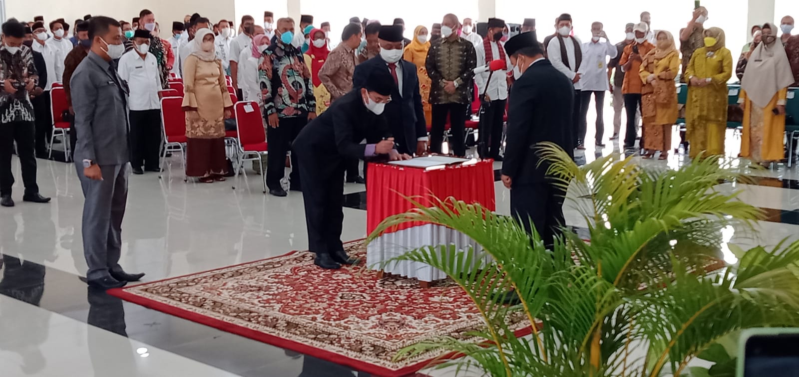 “Bila melanggar, saya bersedia menghadapi konsekuensinya, sesuai ketentuan yang berlaku,” ucap Edi Busti mengakhiri pengucapan pakta integritas sebelum ditandatangani bersama bupati Agam.