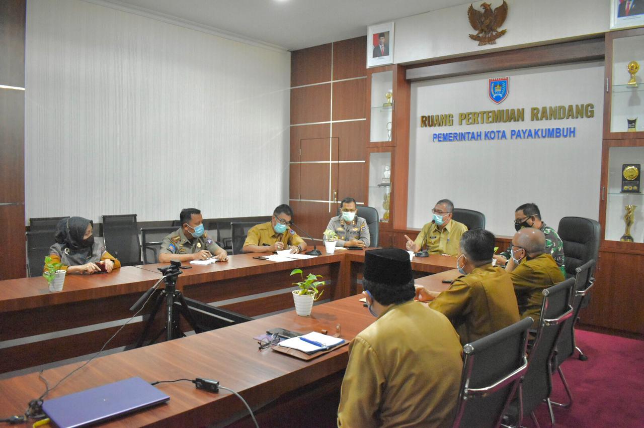 Sumbar, Siberindo – Pemerintah Kota Payakumbuh mengikuti Rapat Koordinasi Penegakan Disiplin Prokes dan Penanganan Covid-19 secara zoom meeting dari Aula Randang Balai Kota Payakumbuh, Senin (3/5/2021).