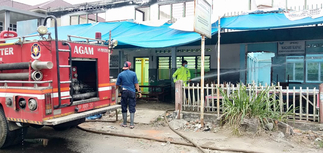 Penyemprotan menggunakan armada Damkar Pemkab.Agam itu menerjunkan beberapa personil, dibantu tim dari Koramil dan Polsek Tilatang Kamang yang dipantau langsung camat Tilatang Kamang Ade Harlien.