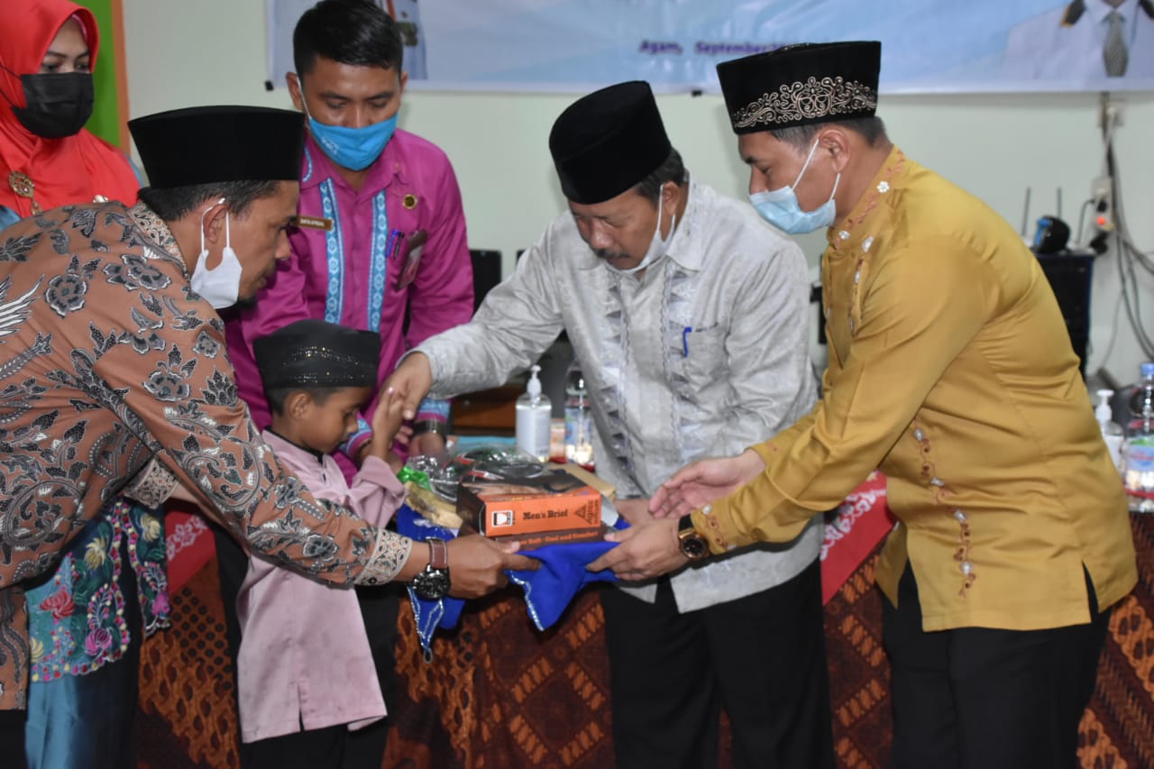 BANUHAMPU, Siberindo-Dihadiri Anggota DPRD Provinsi Sumbar, Rinaldi, Kadis Sosial Agam, Rahmi Artati, Plt Camat Banuhampu, Ekko Espito, dan lainnya, Bupati Agam, Dr. H. Andri Warman, Jumat (3/9/2021) menyerahkan bantuan kepada 21 orang untuk anak laki-laki, dan 20 orang untuk anak perempuan Panti Asuhan Muhammadiyah Ranting Cingkariang, Kecamatan Banuhampu.