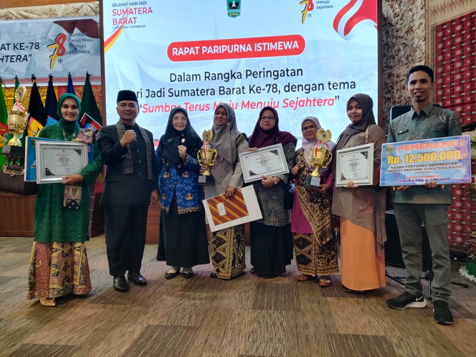 Kader Posyandu Berprestasi Tingkat Sumbar untuk Kategori Kabupaten, pemenang 1, 2 dan 3 : Warbus Merita (Pematang Panjang, Sijunjung), Vevi Sri Mulyani (Tigo Balai, Agam) dan Ristina Dewi (Sungai Beremas, Pasaman Barat). Harapan 1, 2 dan 3 : Fetranetis (Bukit Sundi, Solok), Desi Angraini (Duo Koto, Pasaman) dan Fitri Rohani Siagian (Sitiung, Dharmasraya).