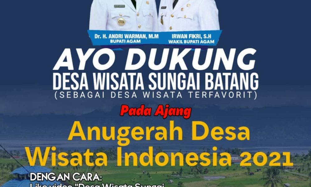 Lubukbasung, siberindo.co — Nagari Sungai Batang, kecamatan Tanjung Raya bidik Anugerah Desa Wisata Indonesia (ADWI) tahun 2021 yang digelar Kemenparekraf RI. Nagari Sungai Batang masuk 50 besar nasional desa wisata terbaik, setelah diresmikan H.Sandiaga Salahuddin Uno, Menteri Parekraf RI beberapa waktu lalu, dan saat ini bersaing di tingkat nasional menjadi salah satu desa wisata terbaik. Dalam event berbeda, sebelumnya Museum Buya Hamka yang berada dalam wilayah Nagari Sungai Batang, sukses meraih peringkat II Nasional dalam kategori situs sejarah dan diharapkan, dengan dukungan berbagai elemen masyarakat di Indonesia, Nagari Sungai Batang bisa menjadi yang terbaik dalam event ADWI 2021.