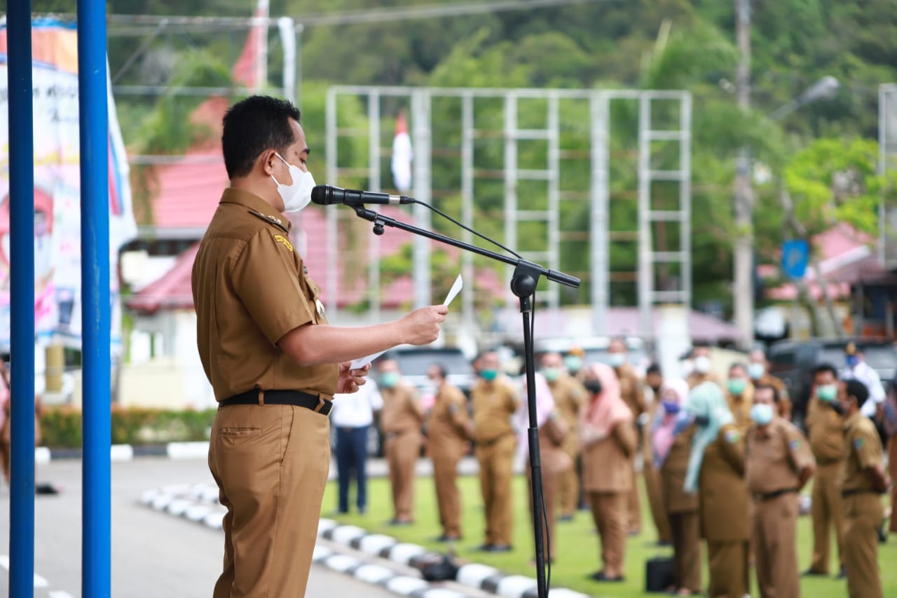 SUMBAR, Siberindo-Wakil Bupati Pesisir Selatan, Apt. Rudi Hariyansyah, S.Si bertindak sebagai Pembina Apel Pagi Perangkat Daerah lingkup Pemerintah Kabupaten Pesisir Selatan, Sumbar, Senin (5/4) di halaman kantor bupati.