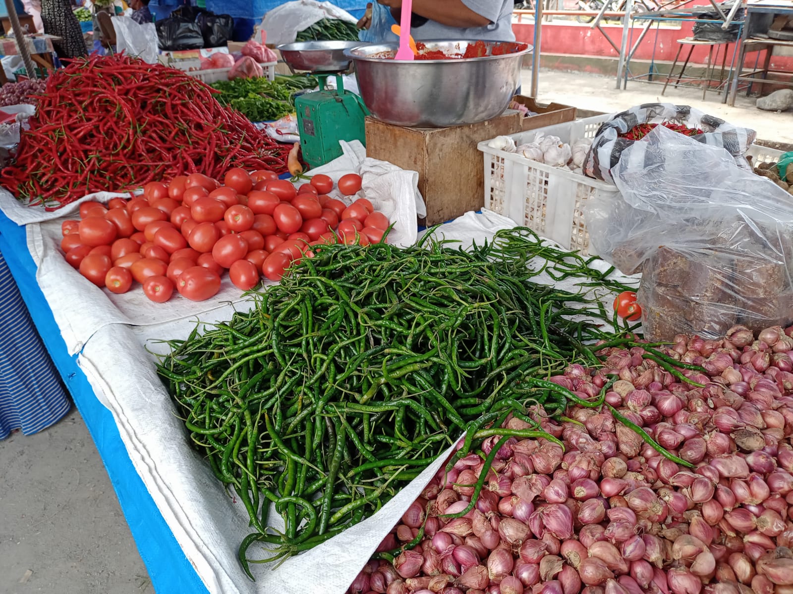 Ia menambahkan, sejumlah bahan pokok dan sayur-sayuran masih tersedia dijual dengan harga standar, yaitu tomat Rp 5 ribu per kilogram, kentang Rp 12 ribu per kilogram, bawang merah Rp 30 ribu per kilogram, dan bawang putih Rp 28 ribu per kilogram.
