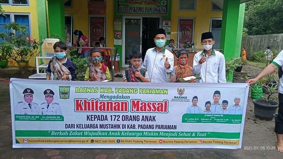Baznas Padang Pariaman membagi 2 titik lokasi tempat dilakukannya sunatan massal, Kecamatan Sintoga, Batang Anai, dan Lubuk Alung dilakukan di Puskesmas Lubuk Alung sedangkan Kecamatan Enam Lingkung, 2×11 Kayu Tanam, 2×11 Enam Lingkung, Nan Sabaris, Ulakan Tapakis dilakukan di Puskesmas Enam Lingkung. Sebanyak 80 orang menjadi penerima manfaat kegiatan ini. Selain itu, anak-anak yang mengikuti khitanan diberikan 63 paket bingkisan berupa obat-obatan dari Puskesmas, kain sarung dan uang.