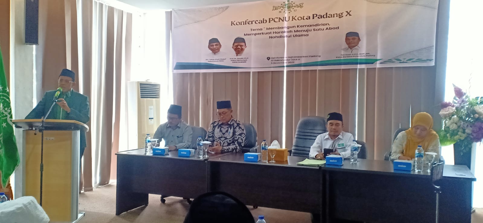 Turut memberi laporan ketua Panitia Konfercab NU Kota Padang Irwandi.