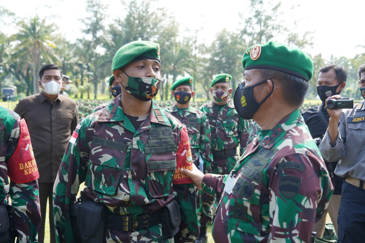 Dalam rangka pemeriksaan kesiapan para prajurit Satgas Yonif 131/Braja Sakti sebagai satuan tugas operasi pengamanan perbatasan RI- PNG tahun 2021, Pangdam I/Bukit Barisan Mayjen TNI Hassanudin SIP, M.M, meninjau langsung kesiapan itu hari Rabu (6/1) di markas Yon 131/Braja Sakti di Tiakar, Payakumbuh Timur, Kota Payakumbuh, Sumatera Barat.