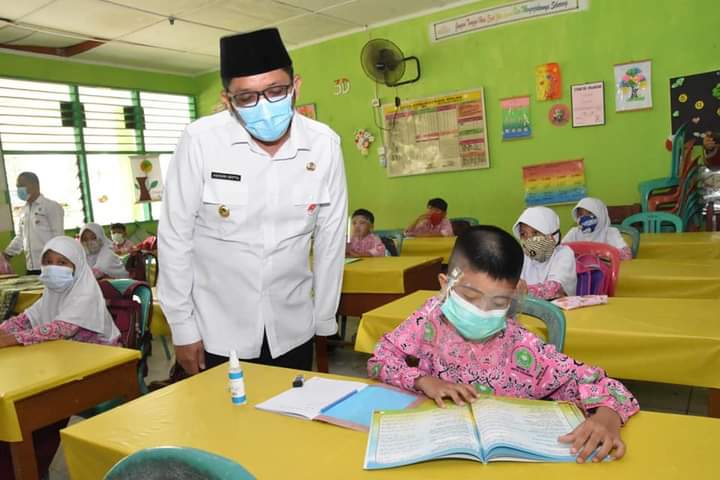 “Kami mengimbau kepala sekolah dan guru untuk memastikan kelengkapan sarana prasarana protokol kesehatan Covid-19, seperti tempat cuci tangan, thermogun, hand sanitizer dan yang paling penting memastikan anak-anak memakai masker selama belajar,” ungkap Hendri didampingi Ketua GOW Kota Padang Ny. Genny Putrinda.