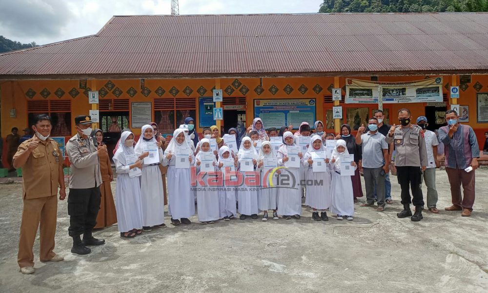 Kapolsek Tanjung Raya AKP Yudi Partanto didampingi Bhabinkamtibmas Koto Malintang Bripka Purwanto mengucapkan terimakasih kepada pihak sekolah yang telah mendukung program pemerintah dalam memberikan vaksinasi pada anak usia 6 sampai 11 tahun.