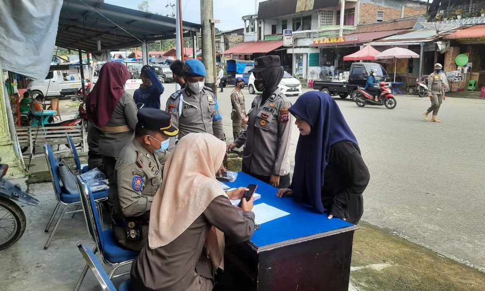 Lubukbasung, siberindo.co — Tim gabungan Polres Agam bersama personil Satgas Penanganan Covid-19 Agam gelar operasi yustisi penerapan protokol kesehatan untuk memutus rantai penyebaran Covid-19 di Pasar Balai Salasa, Lubukbasung, Selasa,(7/9).