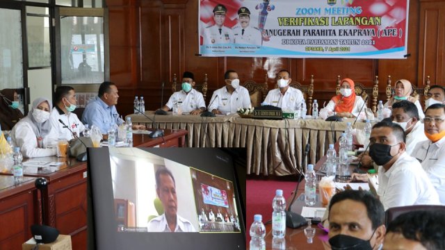 PARIAMAN, Siberindo.co — Walikota Pariaman Genius Umar ikuti verifikasi lapangan penghargaan Anugerah Parahita Ekapraya (APE) Tahun 2021 yang digelar  Kementerian Pemberdayaan Perempuan dan Perlindungan Anak (Kemen PPPA) Republik Indonesia, bertempat di ruang rapat Balaikota Pariaman, Rabu (7/4/2021).