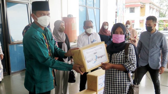 “Bank Nagari menyerahkan bantuan sosial berupa sembako kepada warga kurang mampu di Kota Pariaman sebanyak 50 paket yang tersebar di 4 kecamatan, dan hari ini ada 12 paket untuk pelaku UMKM dengan total nilai Rp. 13.750.000 rupiah, dan hal ini kiranya dapat dirasakan manfaatmya bagi masyarakat Kota Pariaman, bahwa Bank Nagari hadir di Kota Pariaman,” ungkapnya.
