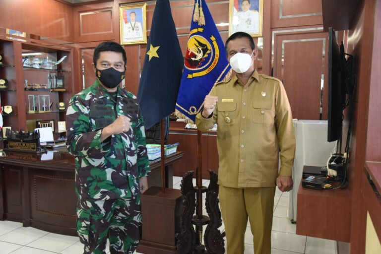 Komandan Pangkalan Utama TNI AL (Danlantamal) II Laksamana Pertama TNI Hargianto, SE., MM., M.Si(Han) didampingi Wadanlantamal Kolonel Marinir Freddy JH Pardosi, SE.,SH.,M.lM., PJU Lantamal dan Kadisharkan Danlantamal menerima kunjungan Walikota Pariaman DR. Genius Umar, M.Si di ruang rapat Danlantamal, Jalan Bukit Peti Peti Teluk Bayur Padang, Senin (7/6).