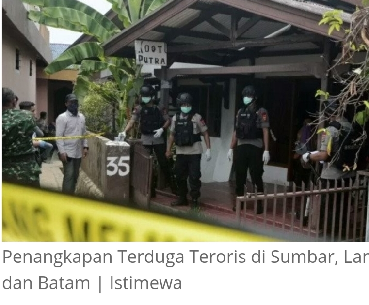 SUMBAR, Siberindo- Enam orang diduga teroris ditangkap Tim Detasemen Khusus (Densus) 88 Antiteror Mabes Polri.