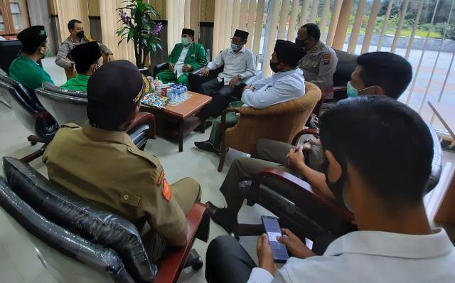 DHARMASRAYA, Siberindo.co – Pengurus Cabang Nahdlatul Ulama Kabupaten Dharmasraya bersama Gerakan Pemuda Ansor Dharmasraya berkunjung ke Mako Polres Dharmasraya, Senin (8/2/2021).