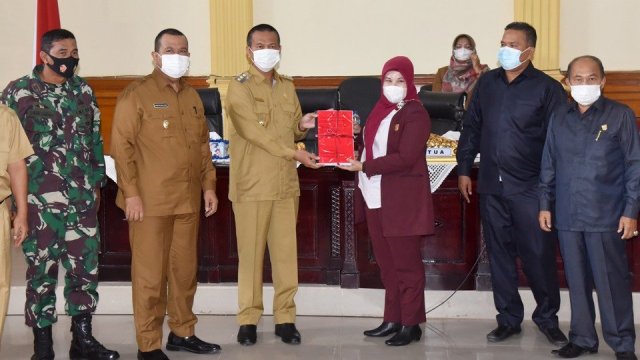 Rapat Paripurna DPRD Kota Pariaman dengan kegiatan penjelasan 3 (tiga) Ranperda oleh Walikota Pariaman Genius Umar berkahir dengan penyerahan 3 (tiga) Ranperda oleh Walikota Pariaman kepada Ketua DPRD Kota Pariaman yang disaksikan seluruh undangan.(dewi lestari/at)