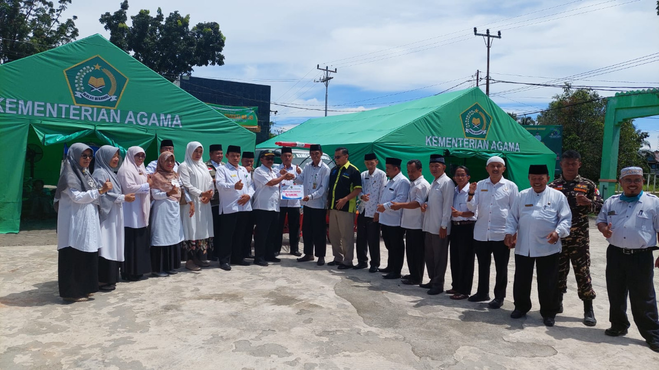 Pada kesempatan itu, Kepala Kantor Kementerian Agama Bukittinggi, Kasmir, bersama rombongan dan Kantor Kementerian Agama Padangpariaman, masing-maisngnya menyerahkan bantuan berupa uang sebesar Rp.10 juta dengan sejumlah paket di depan tenda pengungsian yang sejajar dengan mobil ambulan milik Institut Agama Islam Negeri (IAIN) Bukitinggi diterima Kepala Kantor Kemenag Pasaman Barat Muhammad Nur.