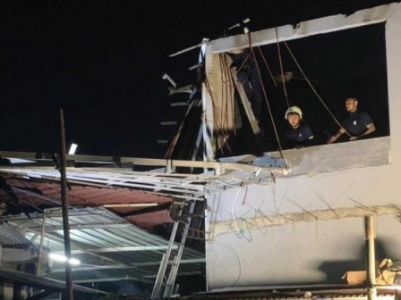 “Kondisi atap bangunan  terangkat dan jatuh melintang di kabel PLN,” tuturnya Rabu (9/3).
