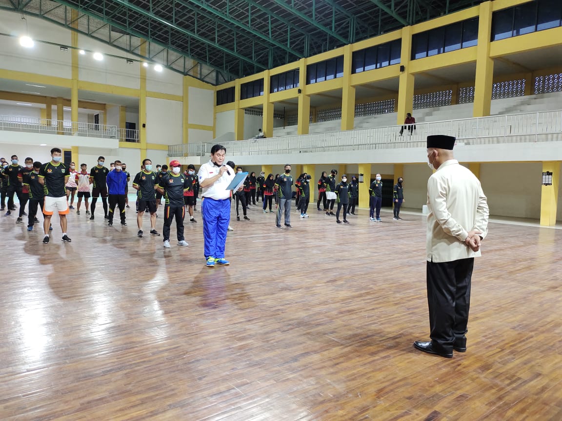 Hal ini disampaikan oleh Gubernur Sumbar saat melakukan peninjauan untuk memberi semangat kepada para atlet dan melihat sejauh mana persiapan para atlet untuk mengikuti PON ke-XX di Papua di gedung GOR H. Agus Salim, Padang, Sabtu (8/5/2021).
