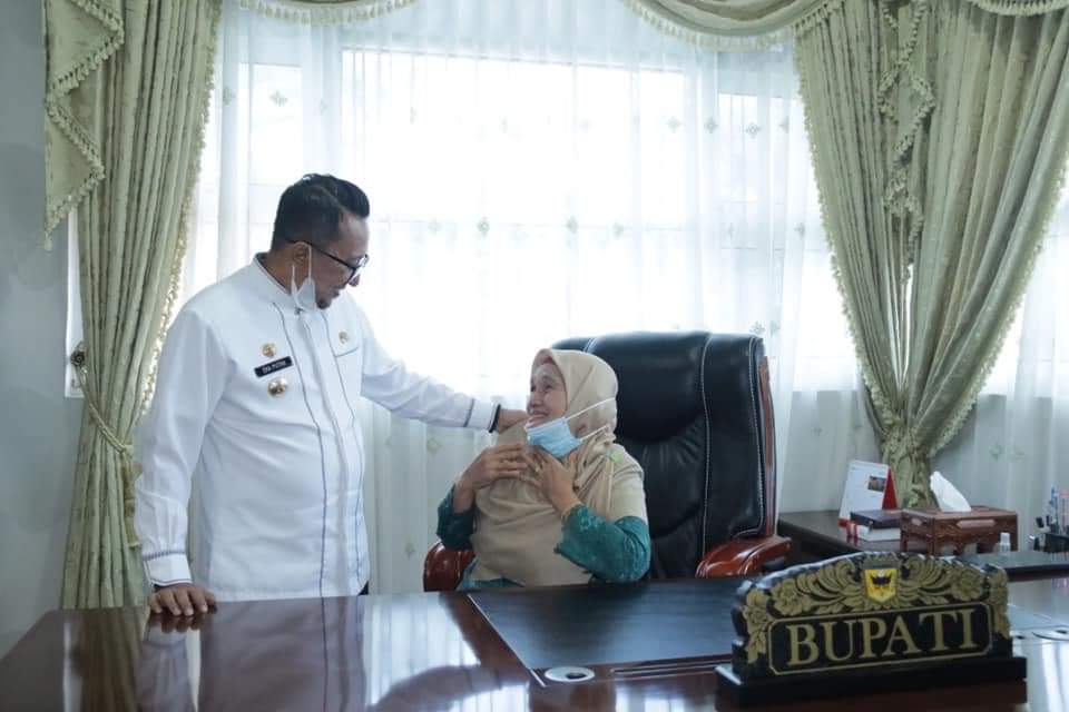 Guru-guru yang diundang ke ruangan terlihat tak kuasa menahan haru. Selama 38 tahun bertugas mendidik anak-anak bangsa, baru pertama kali diundang ke ruangan bupati, bahkan dipersilakan duduk di kursi bupati. (PB)
