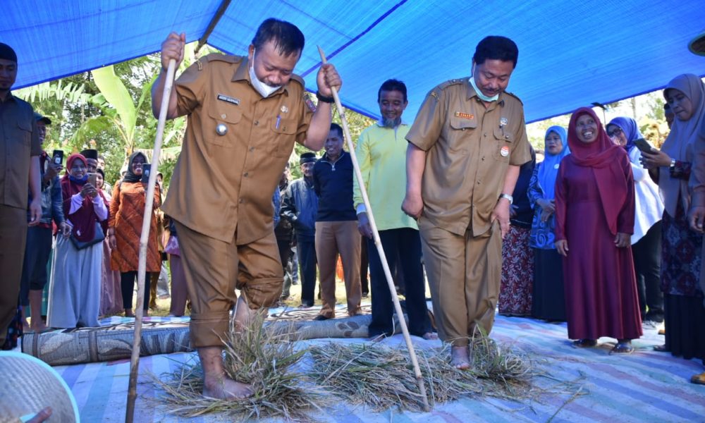 Kamang Mudiak, siberindo.co — Bupati Agam Dr.Andri Warman ikuti panen padi organic yang dikembangkan kelompok tani Sawah Bangsa, Nagari Kamang Mudiak, Kecamatan Kamang Magek, Senin,(10/1). Dalam moment itu, Bupati Agam Andri Warman ikut “ mairiak “ padi yang sudah dipanen secara manual, sebagai symbol panen massal padi organic yang sudah dikembangkan sejak tahun 2014 di areal seluas 4,1 hektar tersebut. Kegiatan yang dihadiri para anggota Keltan. Sawah Bangsa dihadiri kepala BMKG Sumbar, Perwakilan Bank Indonesia Wilayah Sumbar, Kadinas Pertanian Agam Ir.Arief Restu,Msc, Kepala DPKP Agam Yosva Deswira dan para pejabat Pemkab.Agam lainnya itu, sebagai wujud untuk mempertahankan program swasembada beras di kabupaten Agam sekaligus mendorong optimalnya potensi “bareh Kamang” yang terkenal itu.