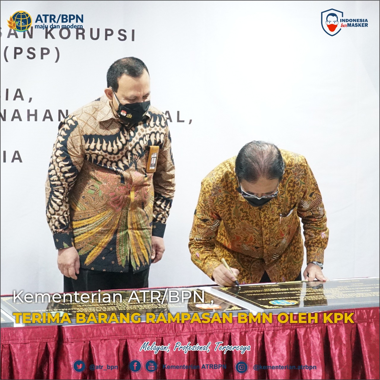 Jakarta – Kementerian Agraria dan Tata Ruang/ Badan Pertanahan Nasional (ATR/BPN) menerima barang rampasan negara dari Komisi Pemberantasan Korupsi (KPK).