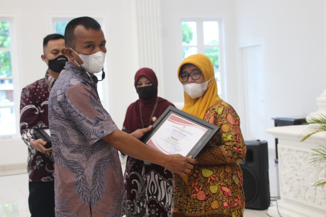 Bukittinggi, siberindo — Sebanyak 76 orang penerima manfaat Program Keluarga Harapan (PKH) menerima sertifikat Graduasi Berdikari Sejahtera Kamis (10/06). Sertifikat itu diserahkan oleh Asisten II Setdako Bukittinggi di Pendopo Rumah Dinas Wali Kota Bukittinggi. Kepala Dinas Sosial Bukittinggi Linda Faroza mengatakan PKH adalah program pemberian bantuan sosial bersyarat kepada keluarga pra sejahtera yang ditetapkan sebagai Keluarga Penerima Manfaat (KPM) PKH. Para penerima Program Keluarga Harapan diharapkan berhasil naik kelas dan meraih Graduasi Berdikari Sejahtera sehingga kualitas hidupnya semakin membaik. Dan diharapkan akan diikuti oleh KPM lain yang sudah tergolong mampu. Hal ini juga berperan dalam menurunkan angka kemiskinan di Bukittinggi. Hari ini juga diserahkan kartu PKH kepada 20 Keluarga Penerima Manfaat baru. Terhitung hingga Februari 2021 telah ada 1139 KK penerima PKH. Selama program PKH dari akhir 2016 hingga sekarang, 222 KK telah keluar dari PKH.