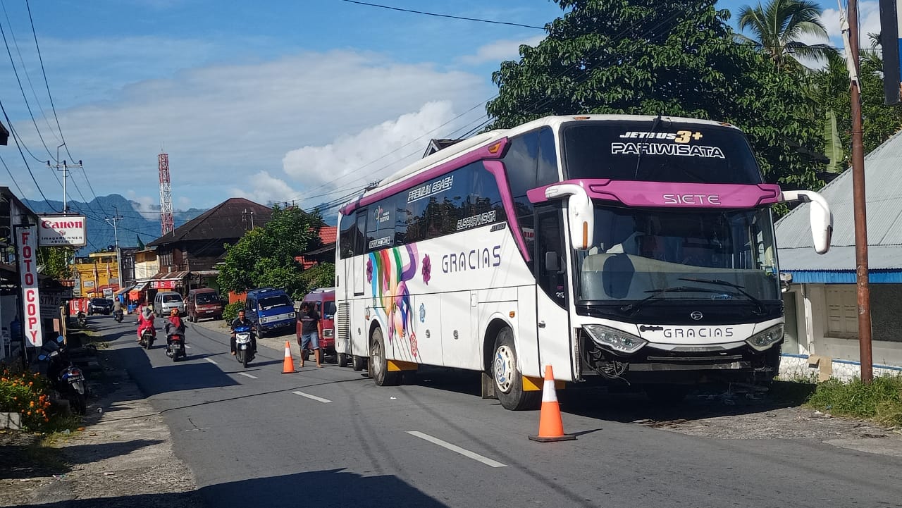 Bus bermesin Hino RK8 R260 dibalut dengan bodi Jetbus 3 HDD itu nantinya akan dibawa ke kantor Satlantas Polres Agam.