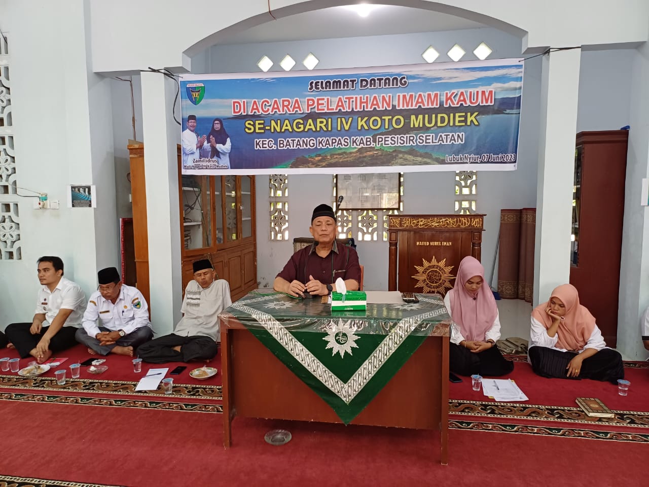 Pelatihan Imam Kaum se-Nagari IV Koto Mudiek ini dilaksanakan di Mesjid Nurul Iman Muhammadiyah dengan nara sumber adalah Ketua LKAAM Pesisir Selatan Drs. Syafrizal Ucok Harapkan Pemda Pessel Anggarkan Bantuan APBD untuk Imam Kaum.*