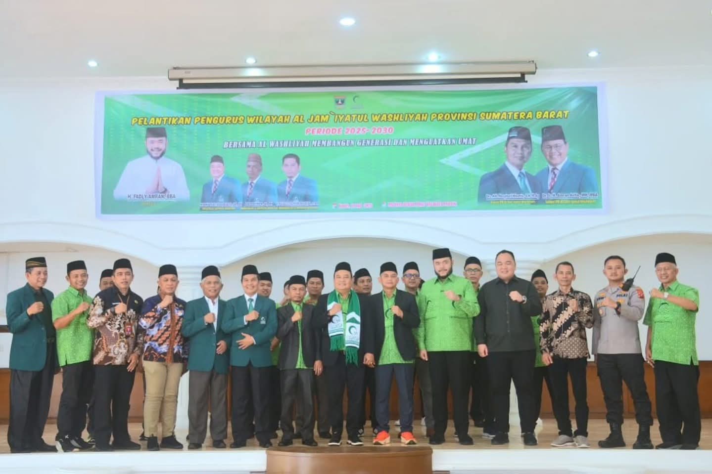 Ketua Umum PB Al Jam’iyatul Washliyah Dr. H. Masyhuril Khamis, SH.,MM melantik langsung Pengurus Wilayah Al Jam’iyatul Washliyah Provinsi Sumatera Barat periode 2025-2030, di Palanta Rumah Dinas Wali Kota Padang, hari Kamis (10/7/2025) pagi.