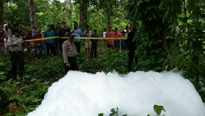 Dari informasi yang diperoleh, kejadian tersebut berawal saat salah seorang hendak pergi ke areal perkebunan miliknya, namun saat melintasi lokasi, terlihat segumpalan busa atau buih berwarna putih dengan ukuran cukup besar.