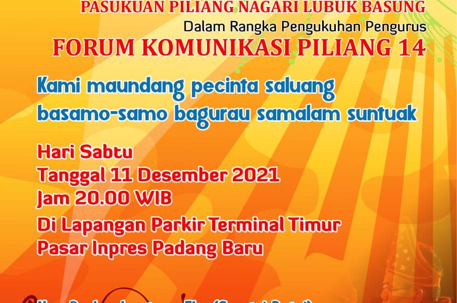 Dijelaskan Mairizal, selain prosesi pengukuhan pengurus FKP14 Nagari Lubukbasung, moment itu juga akan berlanjut dengan kegiatan silaturrahmi antar keluarga besar kaum suku Piliang, tidak hanya yang ada di nagari Lubukbasung, juga secara khusus akan berdatangan dari berbagai nagari lain di Kabupaten Agam.